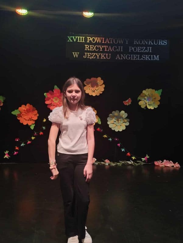 5 listopada odbył się XVIII Powiatowy Konkurs Recytacji Poezji w Języku Angielskim.Naszą szkołę reprezentowała Kalina Piasna, uczennica klasy 6a, zdobywając 1. miejsce za przepiękną recytację. Gratulujemy Kalince oraz pani Sylwii Kunieckiej!
