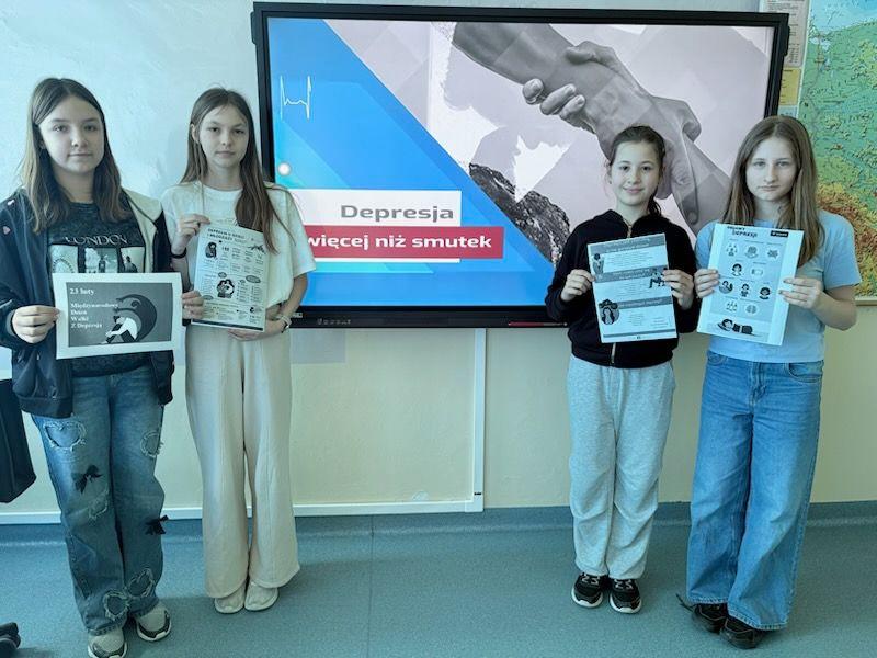 Emocje są jak pogoda – czasem świeci słońce, a czasem pada deszcz. Najważniejsze, by nie stać w tej ulewie samemu. W związku ze Światowym Tygodniem Walki z Depresją uczniowie klas podczas zajęć z wychowawcami podjęli ważny i trudny temat depresji. Rozmawiali o emocjach towarzyszących młodym ludziom oraz o sposobach radzenia Szczególną uwagę zwrócono na różne formy pomocy i wsparcia, z których można skorzystać w trudnych chwilach. Uczniowie poznali także ważne numery telefonów pomocowych, m.in. Telefon Zaufania dla Dzieci i Młodzieży oraz Dziecięcy Telefon Zaufania Rzecznika Praw Dziecka.