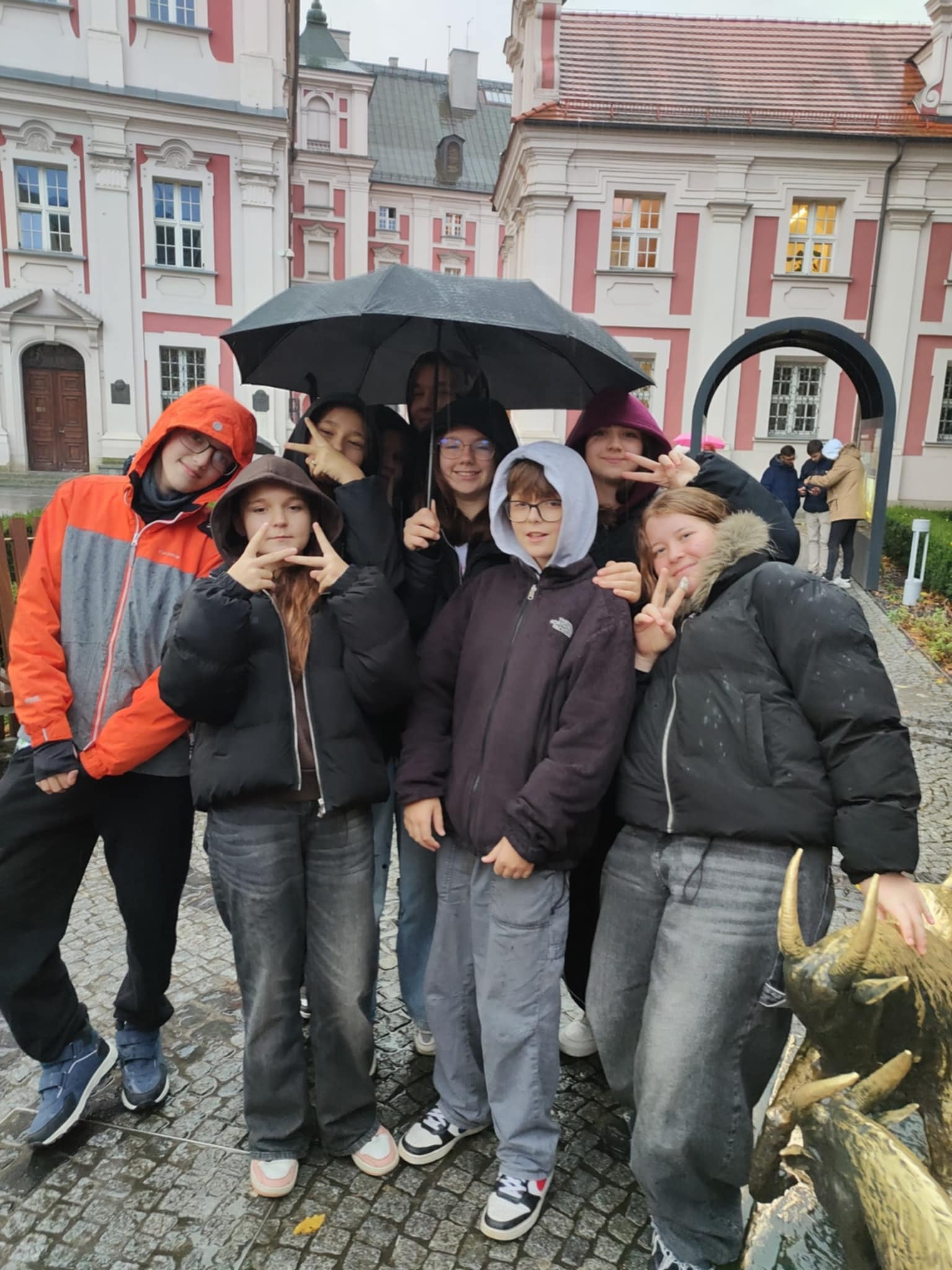 30 października 2025r. uczniowie klas: 5a, 6a ,8b i 4a uczestniczyli w atrakcyjnej wycieczce do Poznania. Wspólna przygoda rozpoczęła się od wzięcia udziału w pokazie pieczenia słynnych rogali świętomarcińskich prowadzonym przez Rogalowego Mistrza w poznańskim muzeum. Prezentacja wypieku połączona była z ciekawymi warsztatami. W dalszej kolejności uczniowie zwiedzali z przewodnikiem Stare Miasto: Ratusz- dawną siedzibę Rady Miejskiej i Kościół Farny z krużgankami - barokową świątynię zachwycającą wyjątkową architekturą. Największe wrażenie na dzieciach wywarł pokaz ruchomych figurek koziołków o godzinie 12.00. Jest to jedna z najpopularniejszych atrakcji Starego Miasta w Poznaniu.